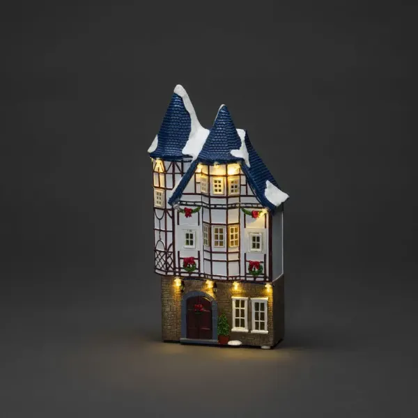 B/O 3 petit; Maison, maison hivernale avec 23 lumières LED blanc chaud qui créent une lueur atmosphérique. Minuterie 6 heures. Durée de combustion jusqu'à 62 heures en fonctionnement sur batterie. Parfait comme décoration de table pour apporter une ambiance de Noël chaleureuse dans la maison.