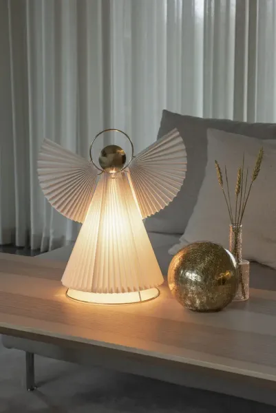 Ange en papier élégant avec des détails plissés et une tête dorée – une belle décoration qui s'intègre parfaitement dans la fenêtre ou sur la table. Crée une atmosphère calme et chaleureuse dans votre maison pendant l'Avent et Noël. Facile à placer et contraste élégant avec les décorations de Noël traditionnelles. Un favori année après année. Livré avec câble blanc de 5 m, interrupteur d'alimentation et prise. Source lumineuse non incluse.