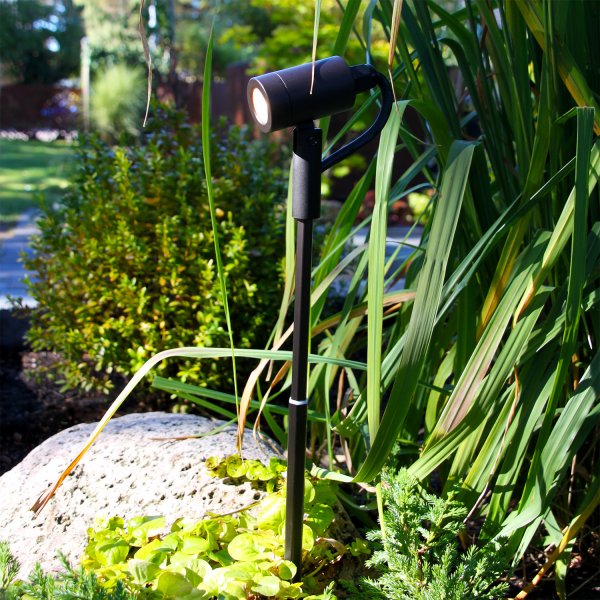 Astro est une petite lampe flexible adaptée aux petits arbres, aux buissons et à tout endroit où vous souhaitez éclairer des objets individuels, comme une œuvre d'art ou une surface d'eau. La lumière est magnifiquement diffusée et peut être dirigée vers le haut et vers le bas, ce qui rend la lampe adaptée à de nombreux types d'arbustes et d'arbres, ainsi qu'aux trottoirs et aux chemins. La hauteur de la lampe peut être réglée entre 31 et 44 cm et est réglable à 180°.