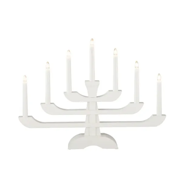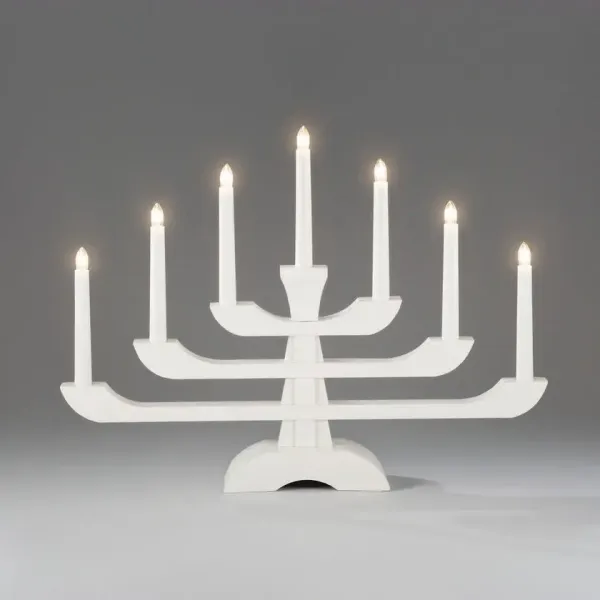 Ajoutez une touche moderne à Noël avec ce bougeoir décoratif de l'Avent en bois laqué blanc. Avec ses trois niveaux élégants et ses sept lumières blanches chaudes, il allie charme classique et design moderne. Parfait comme décoration de fenêtre ou centre de table. la table – Un chandelier atmosphérique et élégant qui illumine chaque soirée d’hiver. Livré avec un câble blanc de 1,7 m, un interrupteur d'alimentation et une prise. Comprend 7 ampoules E10 remplaçables (34 V).