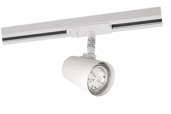 Spot conique Aneta Lighting TRACKLINE, blanc. Les systèmes de rails Trackline d'Aneta Lighting sont personnalisés et installés selon vos souhaits et besoins. Les rails peuvent être alignés ou coupés à la longueur souhaitée. Les rails sont reliés par un joint droit, coudé à droite, coudé à gauche, en T ou flexible. Le raccordement électrique s'effectue soit en bout de rail, soit entre les rails avec une connexion centrale. Terminez la rangée de rails avec un embout. Placez les spots sur le rail selon vos besoins et ajustez la direction de la lumière. Le système de rail Trackline d'Aneta Lighting comprend des spots adaptés à la plupart des gens. Qu'il s'agisse d'une tête de spot classique avec douille GU10 pour n'importe quelle source lumineuse ou de têtes de spot avec sources lumineuses LED dimmables intégrées. La suspension par câble est utilisée pour suspendre les rails au plafond.