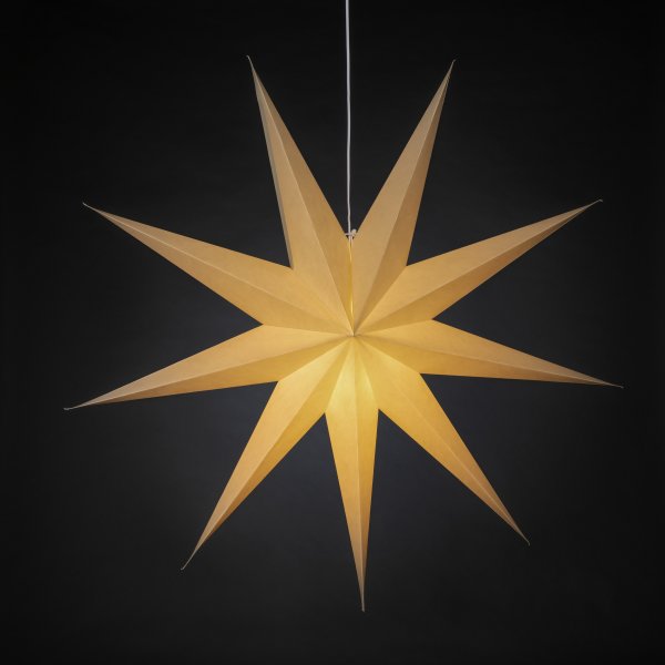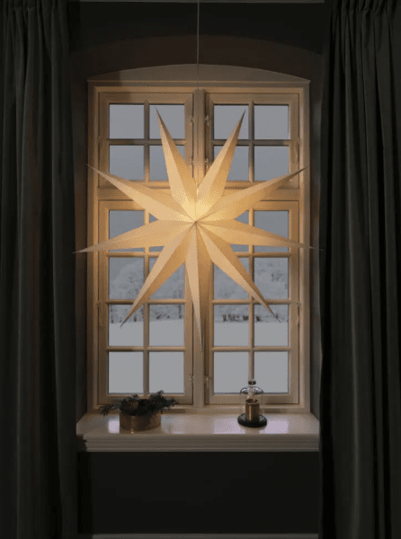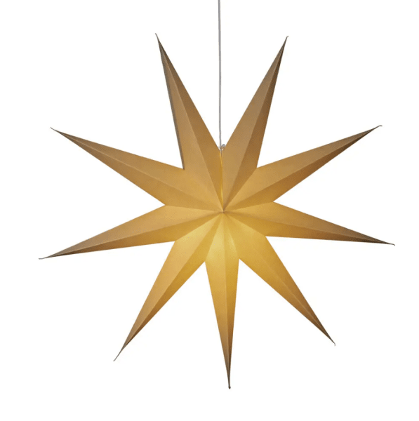Illuminez l'obscurité du mois de décembre avec cette étoile en papier classique dans un ton gris/beige. Avec son design élégant et sa lumière douce, il crée une atmosphère de Noël calme et chaleureuse. Parfait pour accrocher à une fenêtre ou sur un beau mur – une décoration intemporelle qui ajoute une élégance simple à n'importe quelle pièce. Livré avec câble blanc de 5 m, interrupteur d'alimentation et prise. Source lumineuse non incluse.