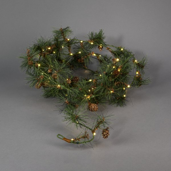 Cette guirlande d'aiguilles de pin artificielles et de petites pommes de pin crée une ambiance hivernale chaleureuse et accueillante. Ses 60 LED jaune chaud diffusent une lumière douce et tamisée, idéale pour une utilisation intérieure et extérieure. Grâce à son design naturel, elle s'intègre avec élégance et simplicité à toute décoration de Noël et d'hiver. La guirlande est équipée d'une minuterie (6 heures allumée, 18 heures éteinte, répétition possible). Elle fonctionne avec 3 piles AA (non fournies) et possède un câble de 50 cm reliant le compartiment à piles.