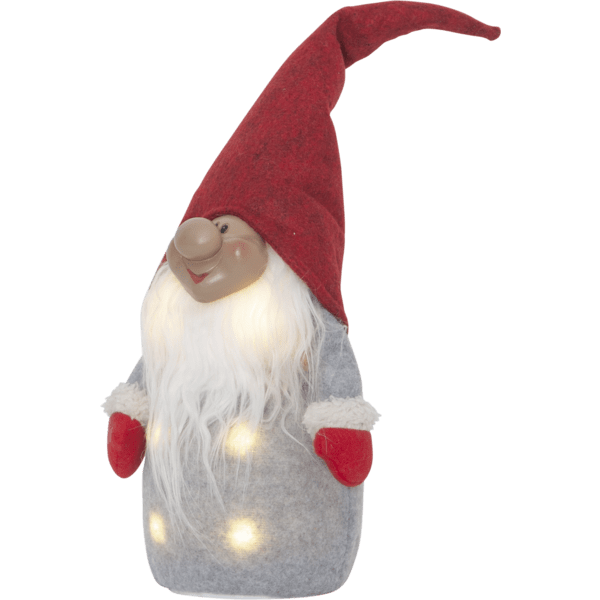 Père Noël douillet avec chapeau rouge et mitaines rouges. Les lumières LED illuminent le corps et créent une atmosphère chaleureuse. Alimenté par 3 piles AA, qui ne sont pas incluses.