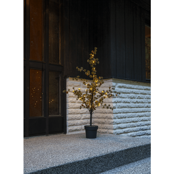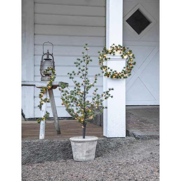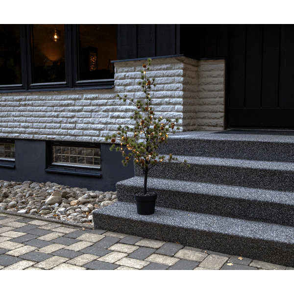 Le sapin Larix possède des branches décoratives aux aiguilles imitant celles du mélèze. Fabriquées en polyéthylène (PE), un matériau écologique, ces aiguilles illuminent le sol. Doté de 40 lumières blanc chaud, il offre un magnifique éclairage et constitue un arbre accueillant idéal pour un escalier, aussi bien à l'extérieur qu'à l'intérieur, par exemple dans un couloir ou une chambre d'enfant. Il fonctionne avec 3 piles AA (non fournies) et dispose d'une fonction minuterie (6 heures allumé, 18 heures éteint, répétition possible). En mode minuterie, l'arbre s'illumine pendant environ 20 jours. Le câble reliant le compartiment à piles mesure 30 cm.