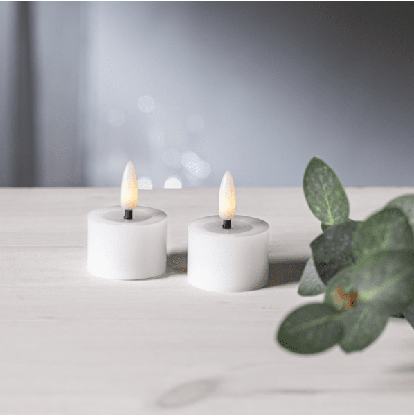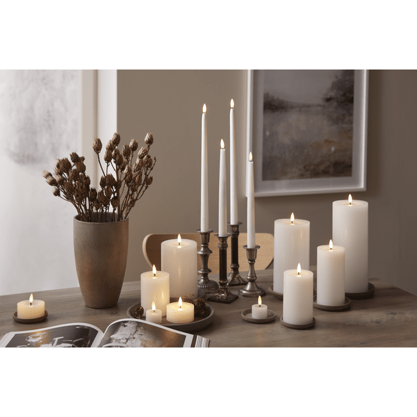 Flamme Flow est une bougie chauffe-plat en cire à piles dans un pack de 2. La lampe a un renfoncement brillant sous la lampe, cette surface ressemble à de la cire liquide, qui, avec la lampe à flamme réaliste dans une lumière blanche chaude, rend la lumière encore plus réaliste. Cette lumière LED est une belle décoration, aussi bien individuellement qu'en groupe avec d'autres lumières de la série Flamme. Il dispose d'une fonction minuterie et lorsque l'interrupteur est allumé, la lumière s'allumera pendant 6 heures en mode minuterie et s'éteindra pendant 18 heures, dans une phase de répétition. L'alimentation est fournie par des piles CR2032, qui sont incluses dans la livraison. Durée de combustion environ 80 heures.