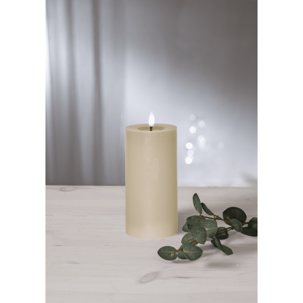 LED Bougie Pilier Flamme Flow Beige De Star Trading - Flamme Flow est une bougie bloc avec la flamme naturelle Flame et une durée de combustion d'environ 10 minutes.