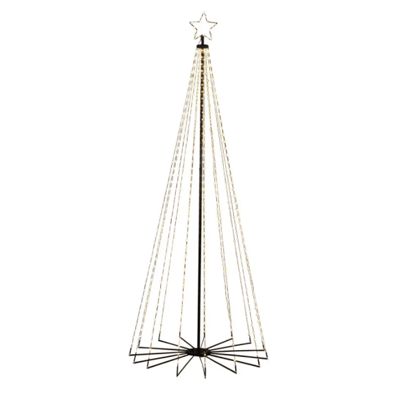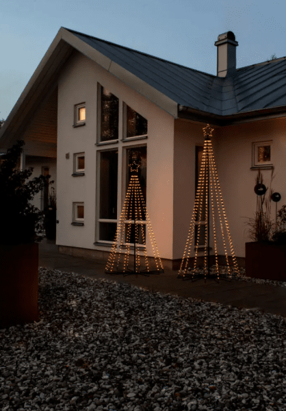Ce sapin de Noël en métal avec étoiles et éclairage LED intégré est une interprétation élégante et moderne du sapin de Noël classique. Avec ses 665 lumières LED, il émet une lueur jaune atmosphérique et chaleureuse qui crée une atmosphère accueillante à l'extérieur. Avec un indice de protection IP44, il est parfait pour une utilisation en extérieur et résistant aux intempéries. Le design élégant et l'étoile brillante sur le dessus en font une décoration fantastique pour le jardin ou le porche pendant la saison de Noël. De plus, la lampe dispose d'un variateur intégré pour que vous puissiez régler la luminosité sur plusieurs niveaux. La livraison comprend un câble de connexion de 10 m et un transformateur.